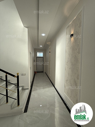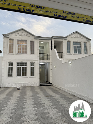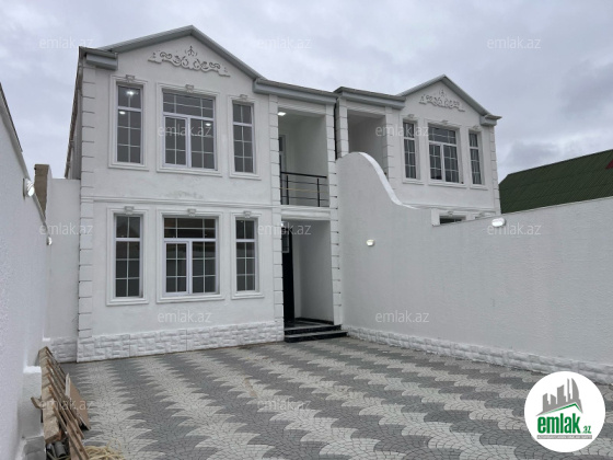 yoldan 100 metr arali,6 sot torpaqda tikilmiş,6 daş kürsülü,120 kv.m.4 otaqlı,əla təmirli ev.Ev əşyalarla bir yerdə satılir(soyuducu,paltaryuyan maşın,...