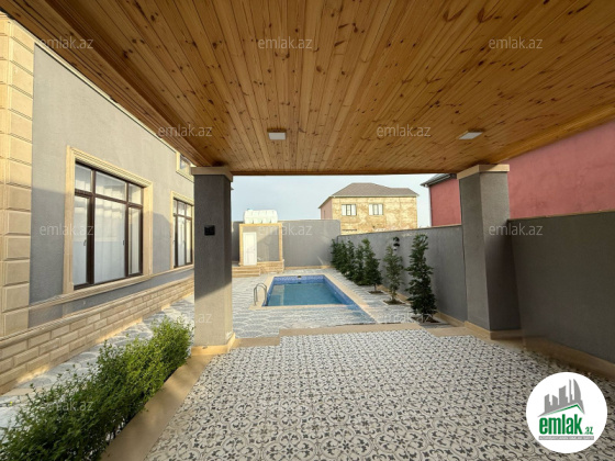 Həyətdə hovuzu, sanitar qovşağı, yay mətbəxi, söhbətgahı, manqalxanası var