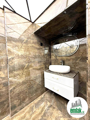 Evin əsas yataq otağının qarderobu və öz sanuzeli var.