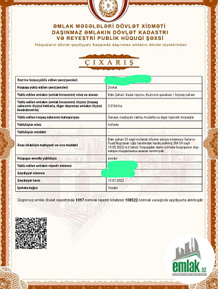 Daşınmaz əmlakın dövlət reyesterində qeydiyyata al...