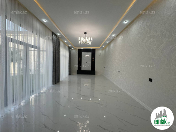 Ümumi sahəsi 200 m² olan evin geniş dəhlizi, qonaq otağı, 3 yataq otağı, garderobu, 2 sanitar qovşağı və mətbəxi mövcuddur.
