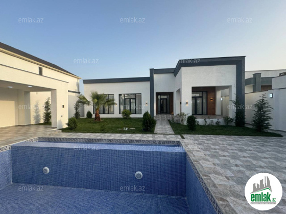 Həyətində aşma hovuzu, terrası, sanitar qovşağı, maşın saxlamaq üçün sahəsi, geniş yaşıllıq ərazisi və dekorativ ağacları var.
