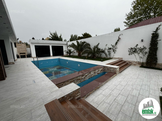 Xezer rayonu Merdekan villalar olan mehellede 7 sot torpaq sahesinde insa edilmis 1 mertebeli villa satilir.Umumi sahesi 194 kvmdir.1 zal, 4 yataq otagi , metbexi , 3 sanuzeli ,holl movcuddur.Heyetinde baseyin, yay qiw metbexti,terras ,manqalni ,bisetkasi. dekorativ ağacları, iwiqlandirma sistemi ,sanitar qovşağı , distansiyonu qapisi var.Evin tikintisində keyfiyyətli tikinti materiallarından istifadə edilmiş və çox səliqəli inşa edilmişdir . Qazi , suyu , isiqi, optik internet daimdir .Senedleri qaydasindadir (KUPCA) .