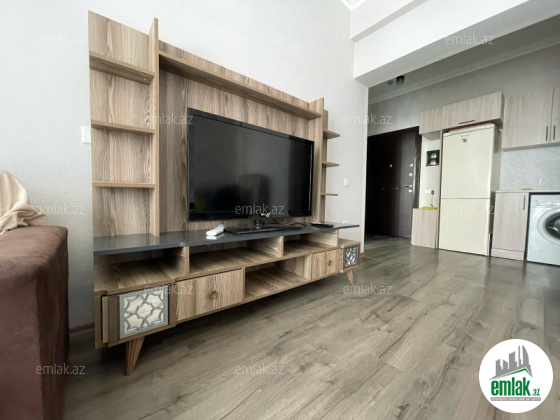 Geniş işiqli qonaq otaqi, ayrica quraşdirilmiş məbəxi və yataq o...
