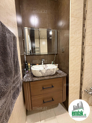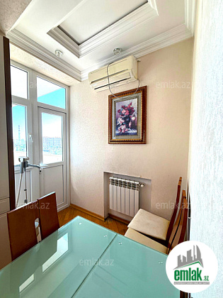 Mənzilin 1 geniş balkonu (cam balkon) var və döşəməsində isti polu da var. Həm mətbəxə,həm də yataq otağına ayrı qapısı var. Mənzərə binanın həyətinə tərəf deyil.