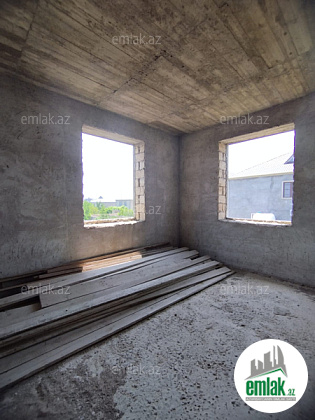 Ümumi sahəsi 12 sot olan kupçalı torpaq sahəsində tikilmiş ev 2 mərtəbə + mansard və zirzəmi olmaqla planlaşdırılıb. Evin bünövrəsi və mərtəbələrarası hissələri manalit beton, divarları isə qoşa daşla inşa olunub. Dam örtüyü hazırdır, ərazi daş hasarla əhatələnib, dəmir darvazası quraşdırılıb.
