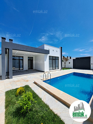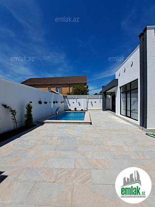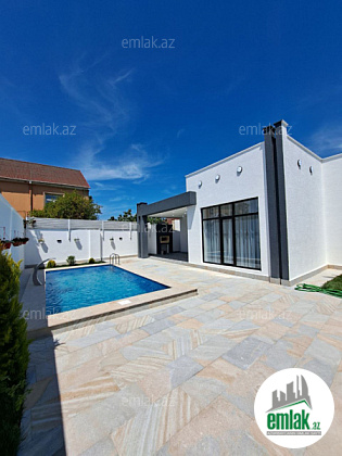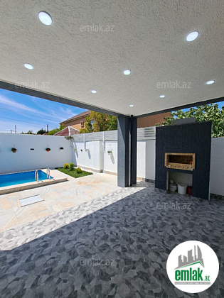 Həyətində filterli hovuzu, manqalı, verandası, sanitar qovşağı, maşın saxlamaq üçün sahəsi, geniş yaşıllıq ərazisi və dekorativ ağacları var.