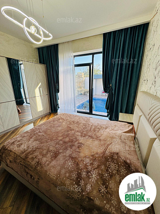 Merrdekan qesebesinde 3 sot torpaq sahasinde insa edilmis bag evi satilir. Ümumi sahəsi 150 kv.m olan bu bağda, 4 otaq var: 1genis qonaq otağı, 3 yataq otağı, mətbəx, xoll və 2s/qovsagi var.Heyetinde filtirli hovuzu,besedkası ,manqal, dekorativ aqaclari , sensorla olan gece isiqlari,qaraj, sanitar qovsagi var.Darvaza pultla idarə olunur.Evin tikintisində keyfiyyətli tikinti materiallarından istifadə edilmiş və çox səliqəli inşa edilmişdir.Qaz,su, işıq daimidir. Senedleri qaydasındadır (Kupca var)