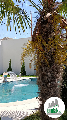 - Hovuz, 1.7m dərinlikdə və şəlaləsi pultla idarə olunur. İdarətməsi, nasosları yerin altında mini podvalda.