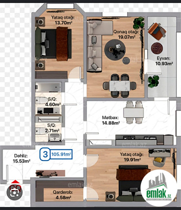 Bakı -Sumqayıt avtobanına baxışı olan istiqamətində Yaşayış sahəsi 105.91 kv m2 təş-