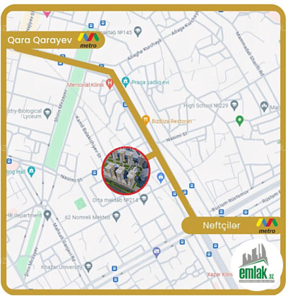 Metroya yaxındır. Kompleksin yaxınlığında isə 2 məktəb, 2 bağça, marketlər, gözəllik salonları, kişi salonları, dərzilər, apteklər, sirniyat mağazaları, geyim dükanları, restoran və kafelər var. Bina keçmiş naçnoy sanatoriya ilə üz bəüzdür indiki adıyla 44 saylı Birləsmiş şəhər xəstəxanası. Planet şadlıq sarayınada yaxındır. Nizami Rayon Polis İdarəsinin 25-ci Polis Bölməsinədə yaxındır. Bir sözlə mənzil əla, əlverişli və infrastrukturlu yerdədir.