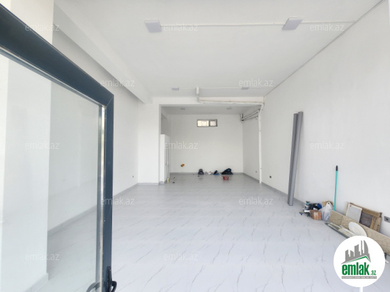 Yeni tikili binanin 1ci mertebesinde umumi sahes 86 m², hündürlüyü 6 metr, təmirli obyekt satılır. İşığı, suyu var.
