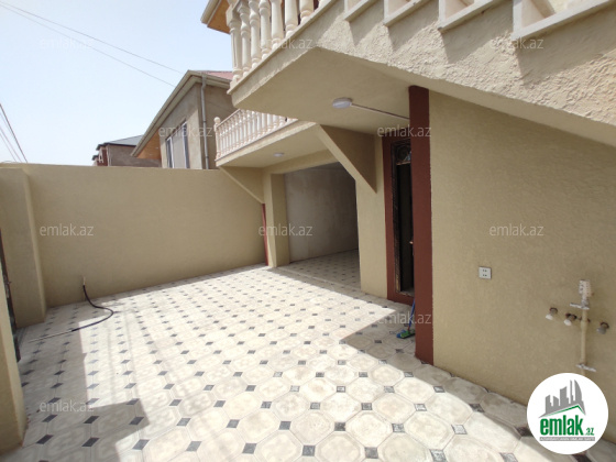 Şexsi tikilmis heyet evidir . Alt ust monalit betondur...7 otagdan ibaretdir . Orta temirli 6 sotun icinde.Otaglar genisdir. Evin icinde heyetin de hamam sanuzel var. Heyetde 10 t su baseyini var. Qaz su isig internet ...