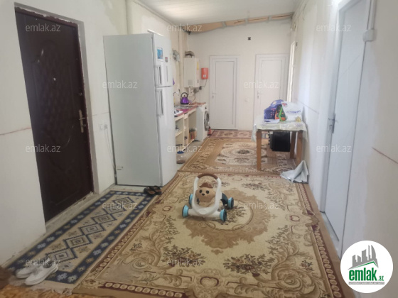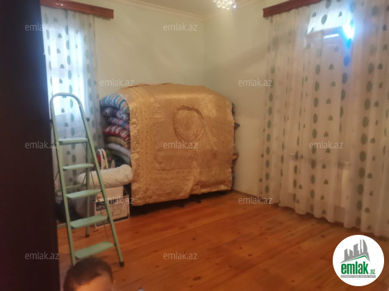 Şexsi tikilmis heyet evidir . Alt ust monalit betondur...7 otagdan ibaretdir . Orta temirli 6 sotun icinde.Otaglar genisdir. Evin icinde heyetin de hamam sanuzel var. Heyetde 10 t su baseyini var. Qaz su isig internet ...