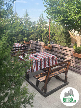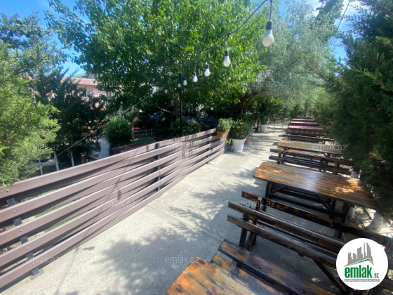 Кафе функционирует и сдается в аренду за 2500 AZN в месяц. Объект имеет свидетельство о праве собственности (купчу). Площадь здания составляет 220 кв.м, общая площадь участка — около 6 соток. Есть передний и задний двор.