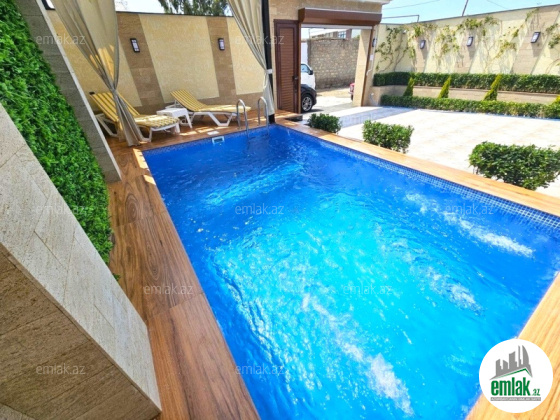 Həyətində Filterni İsti Hovuzu, Açıq Söhbətgahı, Cam Balkonlu Söhbətgahı döşəməsi isti döşəmə, Terası, Texniki otaq, Yaşıllıq ərazisi, 5 Tonluq rezerv su çəni, Kombi otağı, Sensorlu Gecə İşıqları, 7/24 Təhlükəsizlik Kameras , Pultla İdarə Olunan Darvazası və Dekorativ Ağacları var.