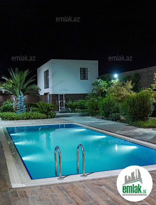 Novxanı, Diana və Kalyon restoranlarına yaxın məsafədə (yola 200 m) 12 sotun içində iki mərtəbəli bağ evi. Ev 5 otaq 1 mətbəx iki sanitar qovşağından ibarətdir. Həyətdə hamam, sanitar qovşağı, besedka, su quyusu, nasosxa...