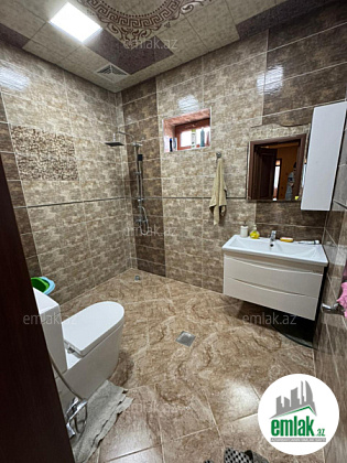 Ümumi tikili sahəsi 143 kv.m olan evin 1 qonaq otağı, 3 yataq otağı, mətbəxi, 1 sanuzeli var..Evin hər tərəfinə keçmək mümkündür. Ev 7daş kürsüdə tikilib.. Evin bütün altı anbar kimi istifadə oluna bilər. Həyətdə 6*3*1.60 hovuz, meyvə və dekorativ ağaclar, 25 kv.m olan yardımçı otaq ( qaraj və yay-qış mətbəxi etmək olar) əlavə olaraq 25kv.m besetka, kombi otağı, 4.5 ton su çəni var.