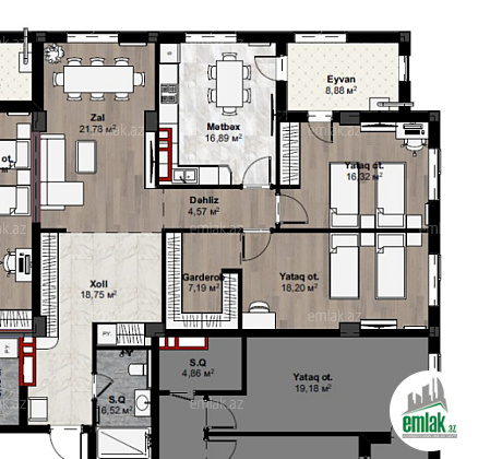 Ümumi sahə: 82 kv.m