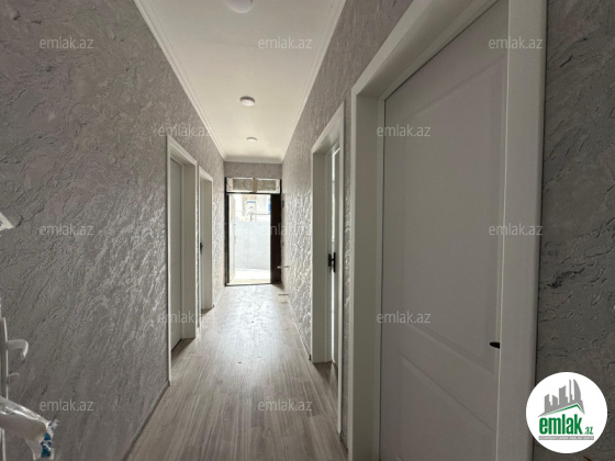 Ev kürslü, divarları 2daş,3 otaqlıdı, kalidoru 16 kvadrat metirdi, onuda 3 otaqdan əlavə kim istəsə otaq kimi istifadə edə bilər.Bütün otaqların qapıları kalidora açılır. İsitmə kombi sistemidi, mətbəx və hamamda istipo...
