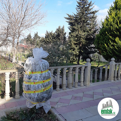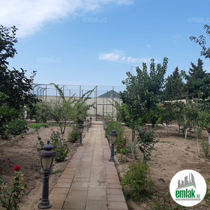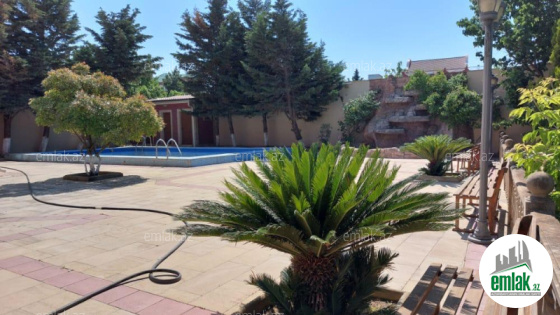 Həyətində Müxtəlif növ ağacları,yay mətbəxi,sanitar qovşağı,filtirli hovuzu, gözətçi otağı,(ayrıca sanuzel qovşağı ilə), Xüsusi Tökülmə torpağı,quyusu.Şəlalə və Generator var.