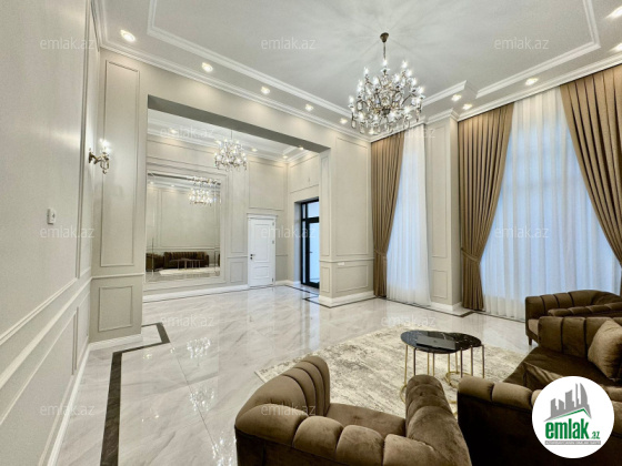 -4,5m hündürlükdə geniş qonaq otağı, 4 yataq otağı, 3 sanitar qovşağı, mətbəx və geniş holl. Tam mebelli satılır.