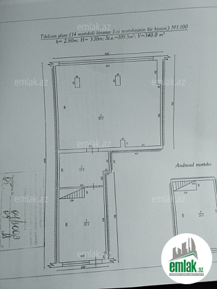 Ümumi sahəsi 170 kv.m. Təmirsiz (pod maya...