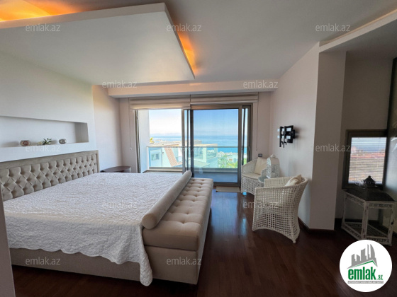 Bu xüsusi bağ dupleksi həm dəbdəbəli detalları, həm də füsunkar dəniz və şəhər mənzərələri ilə fərqlənir.