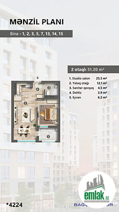 2 otaq studio mənzil 57.22 kvadrat metr 5364 manat ilkin ödəniş, 447 manat isə aylıq ödəniş təşkil edir. 2 otaq 82.92 kvadrat metr 7773 manat ilkin ödəniş, 648 manat aylıq ödəniş təşkil edir. 2 otaq 93 kvadrat metr 8718 manat ilkin ödəniş, 727 manat təşkil edir.