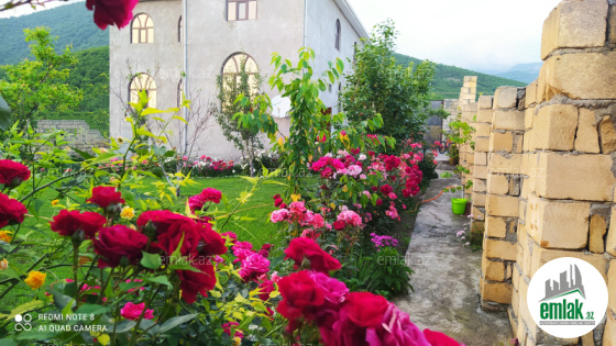 Azərbaycanın turizm bölgələrindən biri olan təmiz havası ilə seçilən Oğuz rayonunda həyətyanı torpaq sahəsi 6 sotux olan ikimərtəbəli həyət evi satılır..Ev qoşa daşnan tikilmiş arakəsmələrde daşdan istifadə olunmuş evə 3 yerdə kəmər atılmışdır.Umumi otaqların sayı 9 otaq təşkil edir.Birinci mərtəbə avro remont olunmuş keyfiyyətli materiallardan, aksessuarlardan, istifadə olunmaqla bahali mebellə təmin edilmişdir.İkinci mərtəbədə təmir işinin 70 faizi görülmüşdür.Ev dağın ətəyində yerləşdiyindən gözəl mənzərəsi dağa açılan gözəl panaramasi, Gozel bağçası ,bar verən meyvə ağaclari var.Evin ümumi qiyməti 185 min manatdır, ev əşyaları ilə birgə satılır
