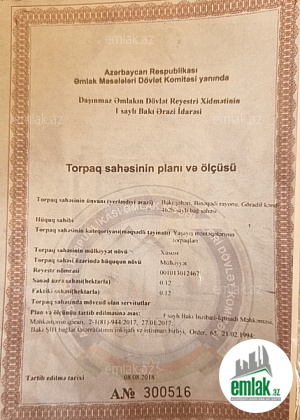 Torpağın sənədi kupçadır-tikintiyə yararlı.