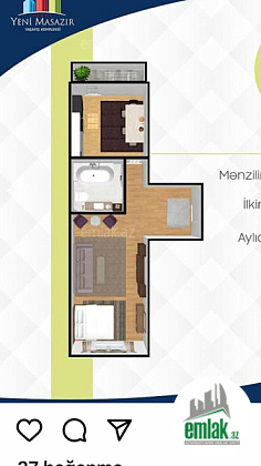 Salam. Mənzil Masazırda Yeni Masazır yaşayış kompleksində yerləşir. 11 mərtəbəli binanın 4üncü mərtəbəsində yerləşir. 60 kv olan mənzil 2 otaqlıdır. Mənzil yaxşı təmirlidir. Əşyalı satılır. Suyu, işığı, qazı daimidir. Lifti var. 24 saat mühafizəsi var. Kupça, çıxarış var. İpotekaya tam yararlıdır. Yaxınlığında məktəb, bağça, futbol meydançası, uşaqlar üçün əyləncə mərkəzi, ticarət mərkəzləri, aptek və marketlər fəaliyyət göstərir. Həm yaşamaq üçün, həm də kirayə vermək üçün çox əlverişlidir.