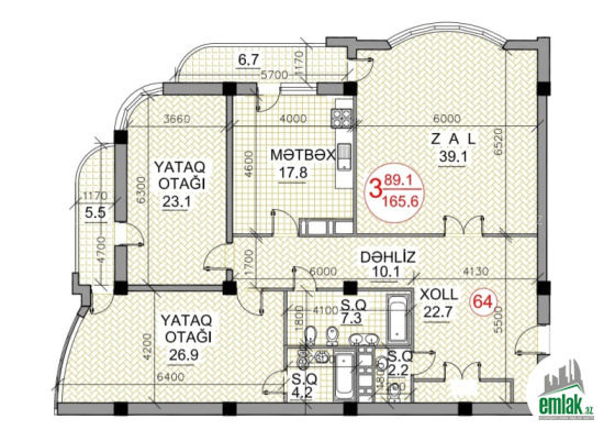 Ümumi sahəsi 175 kv olan bu mənzil QANUNİ 3 otaqdır.