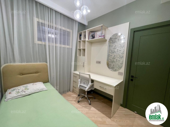 Geniş və işıqlı mənzil yeni yüksək keyfiyyətli təmirlidir. Ümumi sahəsi 118 m²-dir, 19 mərtəbəli binanın 18-ci mərtəbəsində yerləşir. Mənzilin planlaşdırılması çox əlverişlidir. Mebel ilə birlikdə satılır. Təmir olunandan sonra yaşayış olmayıb.