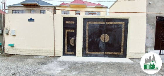Şexsi tikilmis heyet evidir . Alt ust monalit betondur...7 otagdan ibaretdir . Orta temirli 6 sotun icinde.Otaglar genisdir. Evin icinde heyetin de hamam sanuzel var. Heyetde 10 t su baseyini var. Qaz su isig internet ...