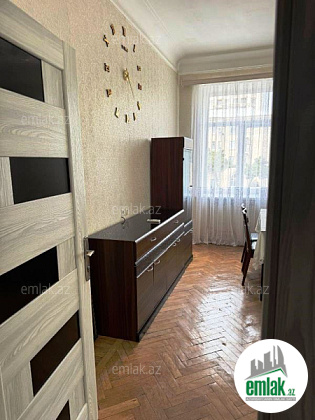 N.Nərimanov metrosu,H.Əliyev prospekti,Saatl binanın yaxınlığında 4 mərtəbəli Stalinka layihəli daş binanın 2-ci mərtəbəsində ümumi sahəsi 80 kv.m olan orta təmirli qanuni 3 otaqlı mənzil əşyalarla birlikdə satılır.Sənədləri qaydasındadır,çıxarış(kupça)var.Su,işığ,qaz daimidir.Sanitar qovşaq mənzildə ayrıdır,təmirlidir.Mənzildə istilik sistemi Kombidir.Mənzilin seyf qapısı,plastik pəncərələri,parket döşəməsi var.Mənzildə Eyvan 14 kv.m. artırılıb,çox geniş eyvanı var.Mənzilin hündürlüyü 3,20 metrdir.Mənzildə əksər mebellər yenidir,mənzili alıb rahatlıqla 800-1000 aznə. Kirayə vermək olar.Mənzil yelçəkəndir(skvaznoydur). İnfrastruktur baxımdan bina əla bir məkanda,ərazidə yerləşir,hər bir yerə yaxındır.Real alıcıya qiymətində endirim olunacaq.