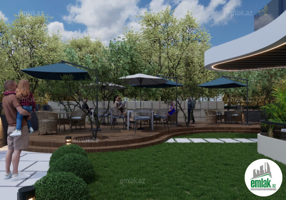 Kompleksin daxilində istirahət zonaları, oyun meydançaları, geniş idman meydançası və alış-veriş məkanlar...
