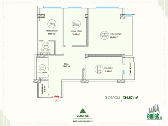 Ümumi sahə: 134.87 m²