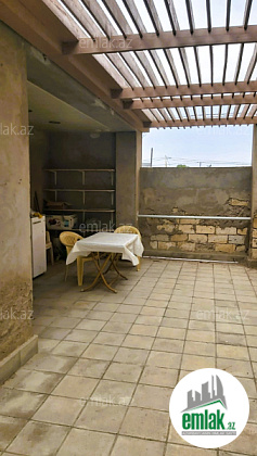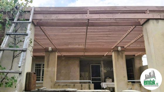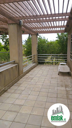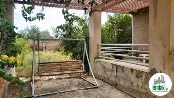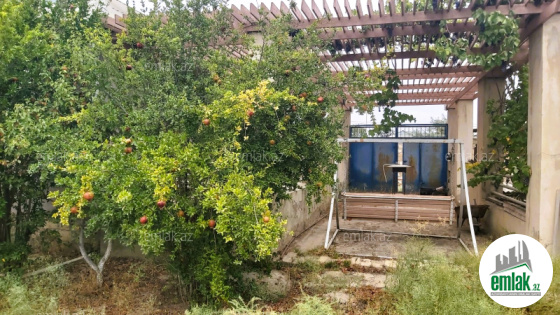 Geniş terrası var, bağda çoxlu ağac əkilib.