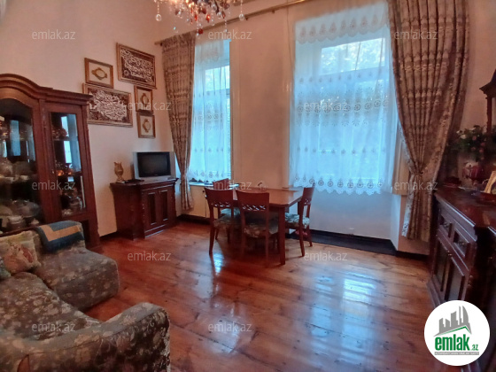 Şəhərin mərkəzində, Zərifə Əliyeva küçəsi ilə Səməd Vurğun küçəsinin kəsişməsində, ümumi sahəsi 63 m2 (16 m2 antresol hissəsidir) olan, 4 mərtəbəli binanın 3-cü mərtəbəsində yerləşən mənzil satışa çıxarılır. Bina möhkəm konstruksiyaya malik olub, həm də tarixi əhəmiyyət daşıdığı üçün dövlət tərəfindən qorunur. Mənzil Sahil metrosundan, avtobus dayanacağından, Bulvardan və Nizami (Tarqovı) küçəsindən 3-4 dəqiqəlik məsafədədir. Avtomobil saxlamaq üçün şlaqbaumlu həyəti də mövcuddur. İşıq, su (şollar), qaz daimi, internet fiberoptikdir. İki s/q var. Biri içəridə, biri isə evdən 10 metr kənardadır. Mənzilin S. Vurğun küçəsinə balkon çıxarmaq üçün icazəsi, üst qonşu ilə arasında isə 30 m2 zirzəmisi də mövcuddur. Həyət tərəfdən isə ümumi eyvanı (paltar sərmək, gül yetişdirmək, çay içmək və s. üçün) vardır.