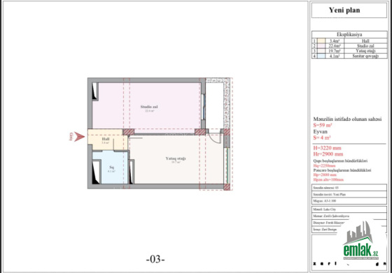 - Sahə68 m2