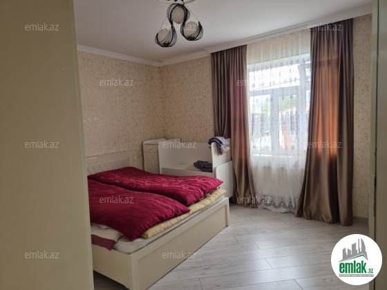 Ev 2 mertebedi. Heyetinde 4 tonluq su anbari var. 48 km² qaraji var, meyve agaclari var. Qazı, suyu, işığı daimidi. Eve baxmaq ucun axsam saat 6 dan sora gele bilersiz.233 nomreli mektebin yani