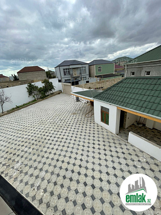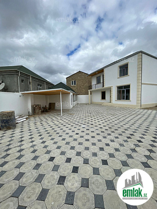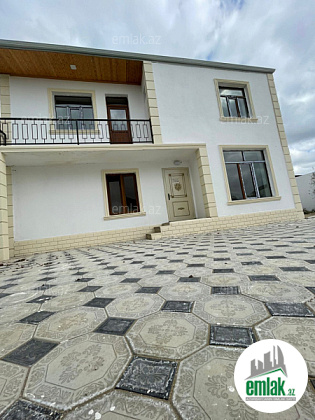 Xezer rayonu bine savxozda Leon şadlix sarayina və 160 sayli marşuruta 400mtr məsafədə 4.sotun icinde 2 Mərtəbəli 4 otaqi +s/q 130 kv ev qosa dasla tikilib qaz isiq su kombi var sened sərancam