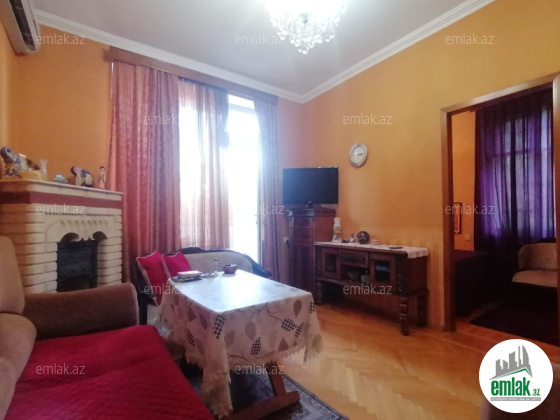 A. Heydərov küçəsi (H.Əliyev prospektindən 50 metr məsafədə) 5 mərtəbəli evin 2ci mərtəbəsi, 1 geniş balkon, su daimi, təmirli, kombi istilik sistemi, kupçalı mənzil. Eksperimental stalinka. Mərtəbə hündürlüyü 2.80m