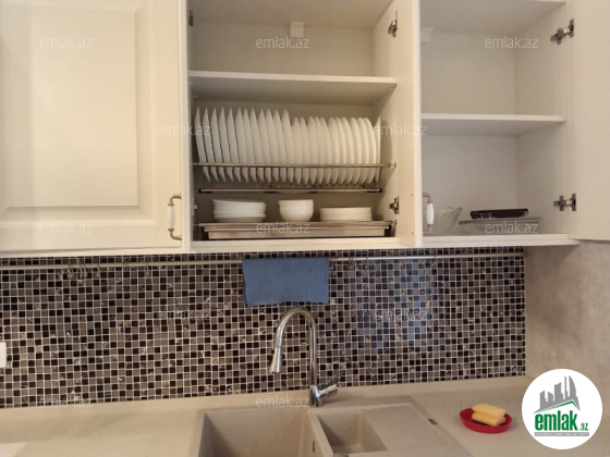 Mətbəxdə qabyuyan, paltaryuyan və 2 kameralı soyuducu mətbəx mebelinin içinə yerləşdirilmişdir (gizlədilmişdir).