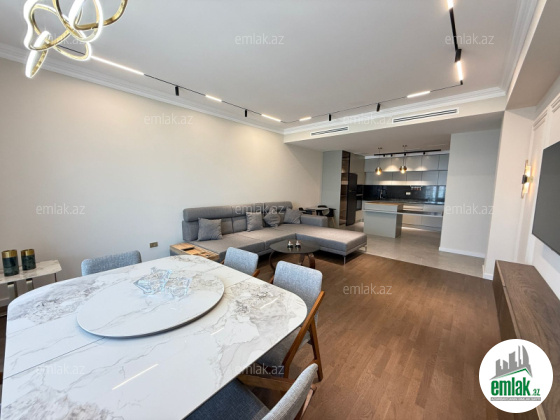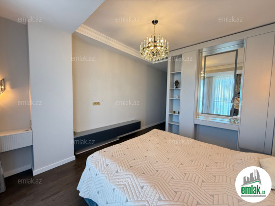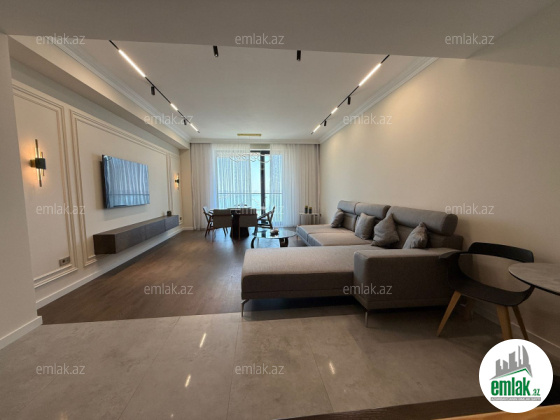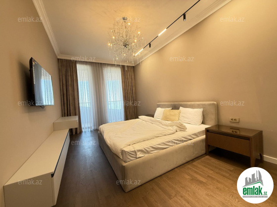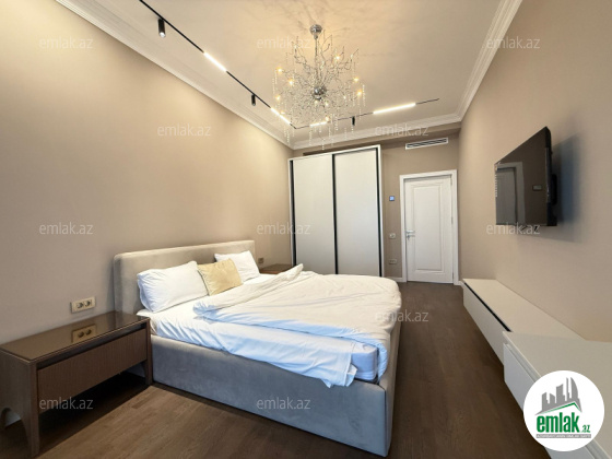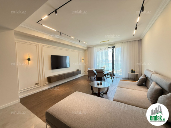Mənzil yüksək keyfiyyətli və bahalı materiallardan istifadə edilərək müasir dizayn üslubunda hazırlanıb. İnteryerində fərdi sifarişlə hazırlanmış elit mebel və dünya brendlərinin premium texnikası var. Geniş qonaq otağı, 3 yataq otağı, tam təchiz olunmuş mətbəx, 2 hamam otağı və dolab otağı — hər detal rahatlıq üçün nəzərə alınıb.