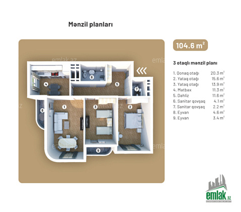 6-cı mərtəbə | 137 m² | 3 otaq