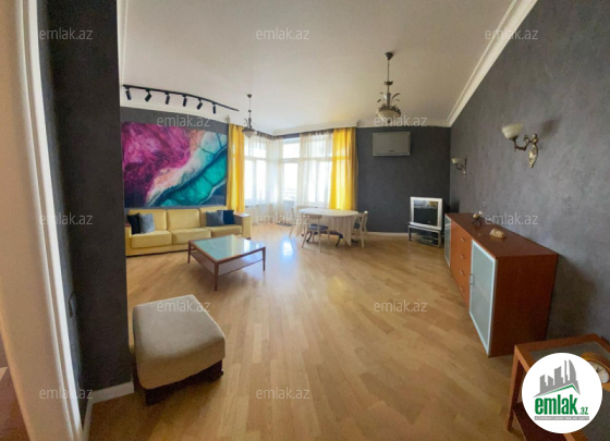 Mənzil gözəl, işıqlı, yaxşı təmirli, qanuni 3 otaqllıdan 3otaq-studioya düzəldilmiş, 2 balkonu (biri uzun vəböyük-2 otaqdan çıxış var, ikincisi balaca - 3-cü otaqdan çıxış var), 2 sanitar qovşağı və geniş dəhlizi. Əşyalar və elektrotexnikalar qiymətə daxildir. Çıxarışda 126kvm-dir, realda daha çox.