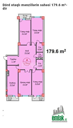 Ümumi sahə: 179.6 m². Otaq sayı: 4