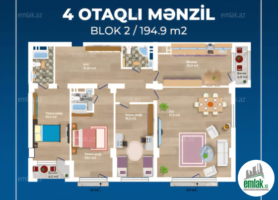 Ag Sheherde Nizami Gencevi Parkinin yaninda 20 mertebeli yasayis binasinin 7-ci ci mertebesinde umumi sahesi 190 kvm olan 4 otaqli ela temirli menzil esyalari ile birlikde satilir.Sened muqaviledir.